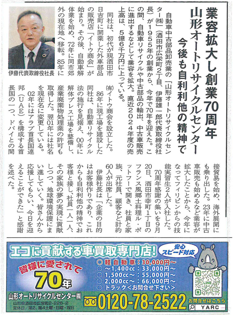 2025年9月20日、創業70周年の記事がコミュニティしんぶんに掲載されました。